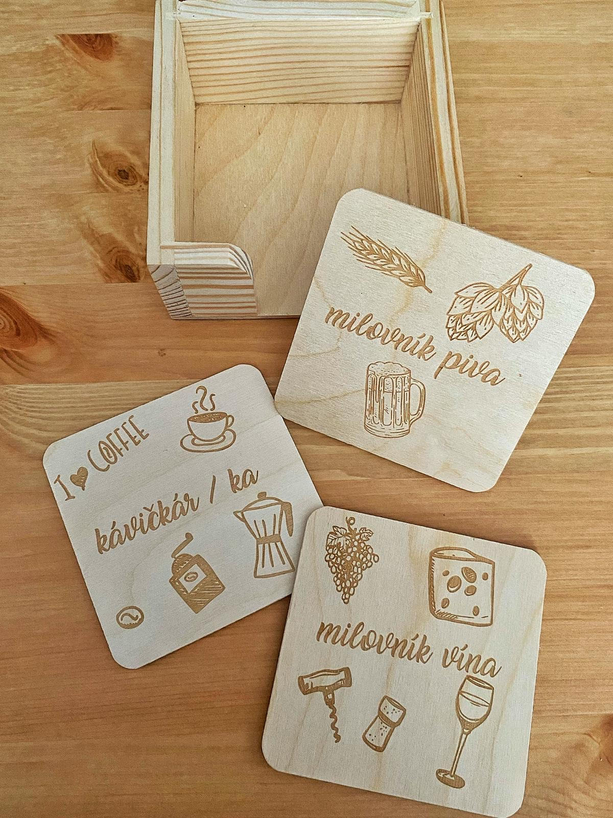 Tento set podpivníkov nájdete u nás na stránke: https://drevofuz.sk/produkt/drevene-podpivniky-pre-pravych-gurmanov-kava-caj-pivo-vino/