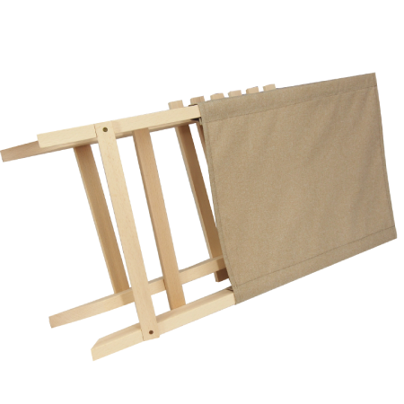 - Kvalitný materiál – kombinácia dreva a odolného textilu zaručuje stabilitu a dlhú životnosť