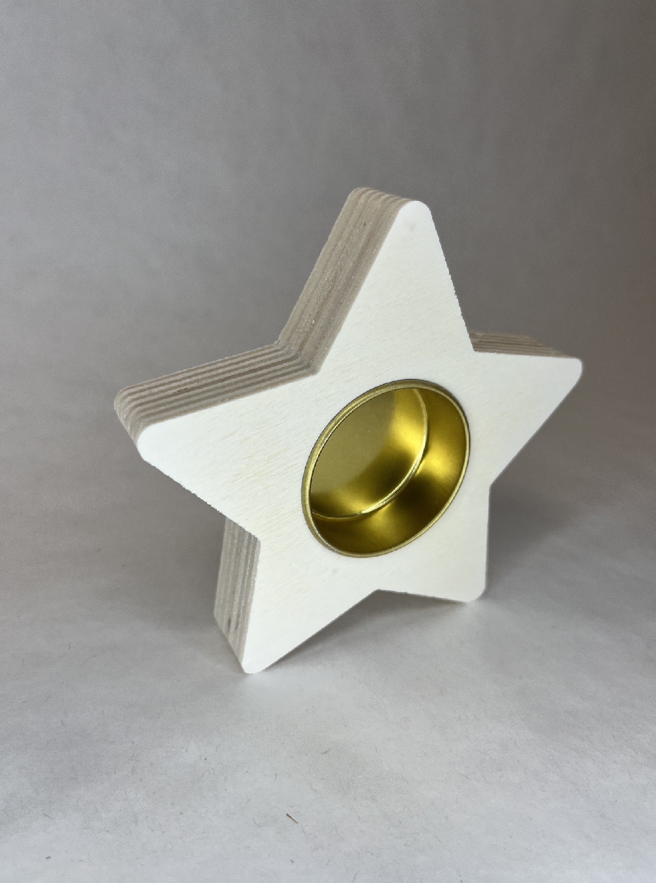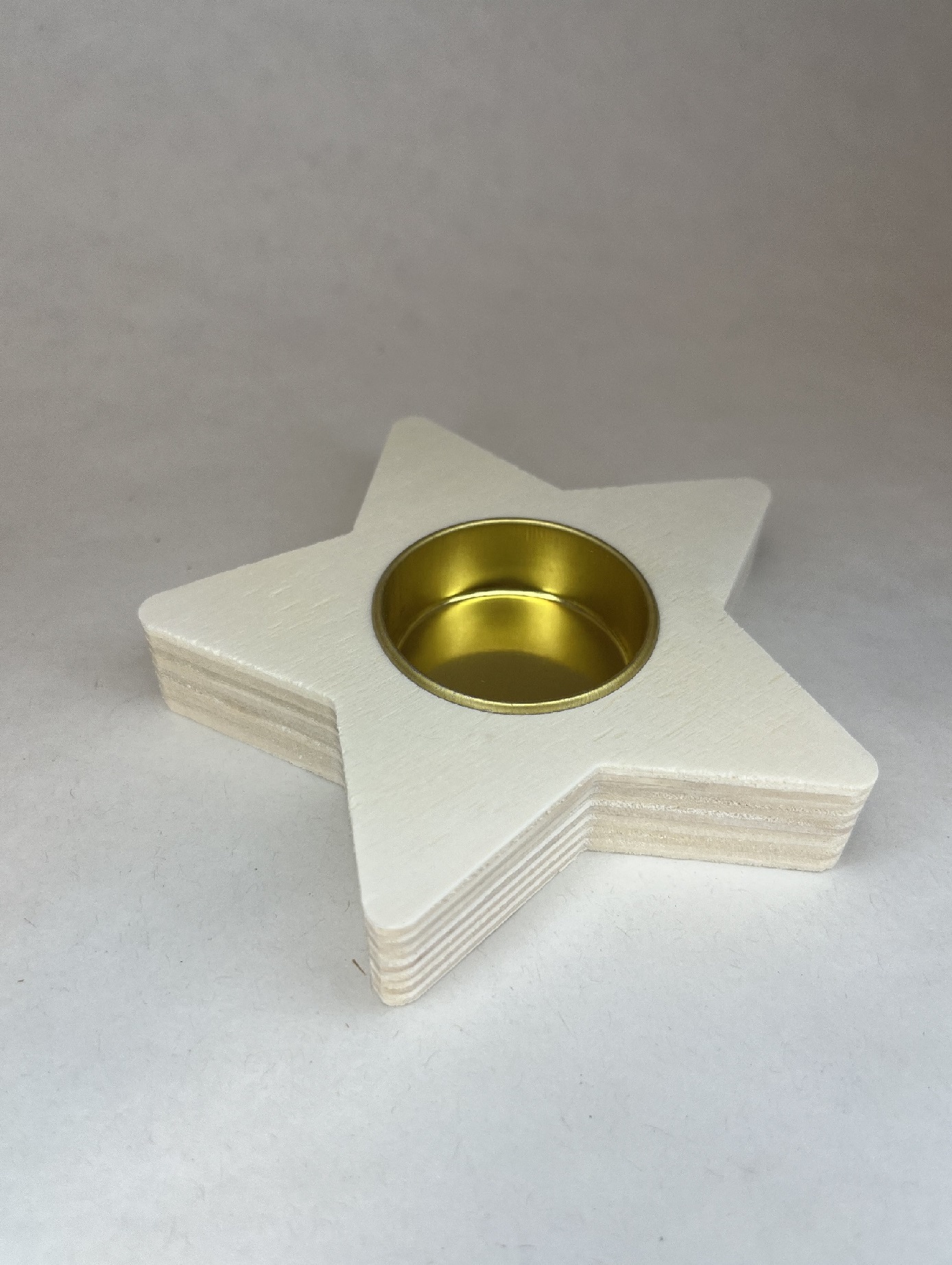 Hľadáte doplnok, ktorý vnesie do vášho domova teplo, útulnosť a jedinečný štýl? Náš svietnik v tvare hviezdy z prírodného dreva spája jednoduchosť s eleganciou a vytvára kúzelnú atmosféru, ktorú si zamilujete. Zlatá kovová miska na čajovú sviečku pôsobí luxusne a krásne kontrastuje s prírodným drevom, čím vzniká harmonické spojenie prírody a moderného dizajnu.