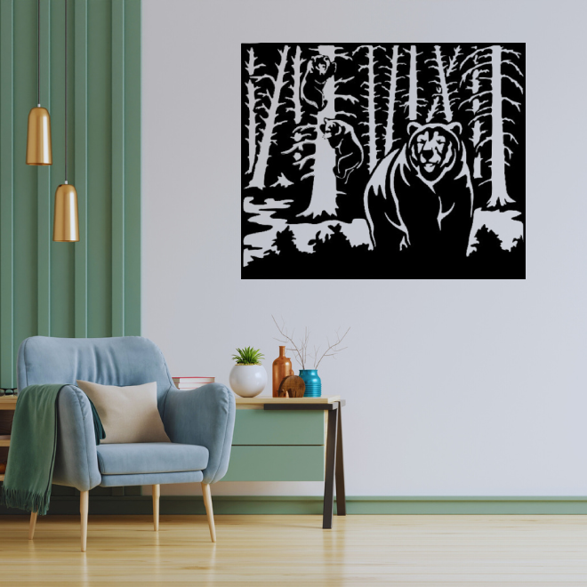 - Originálny dizajn – medvede v lese ako symbol sily, divočiny a prirodzeného poriadku