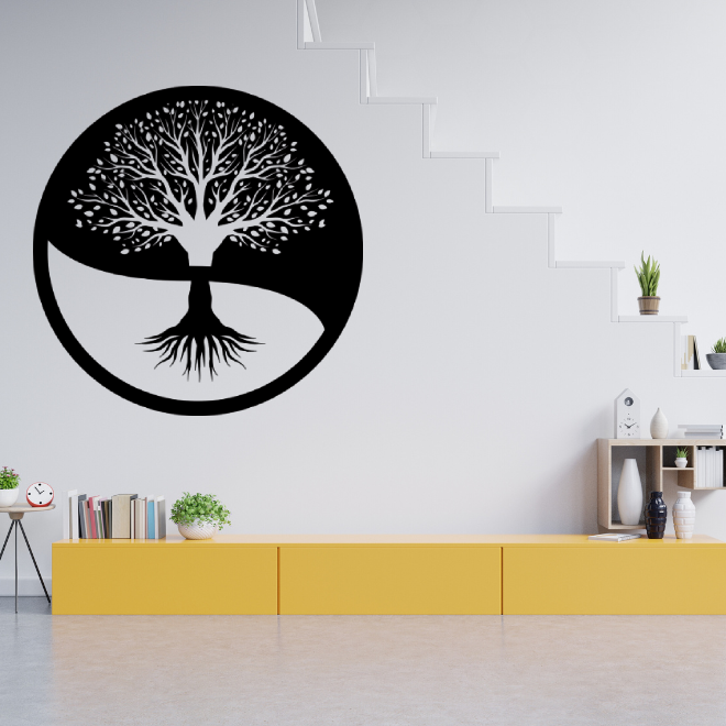 Predstav si, že na tvojej stene visí kruhový obraz, ktorý symbolizuje silu, stabilitu a harmóniu života. Tento jedinečný motív spája dva svety – korunu stromu, ktorá sa dvíha k nebu a pripomína rast, slobodu a nekonečné možnosti, a korene, ktoré sa tiahnu hlboko do zeme a predstavujú pevnosť, tradície a istotu. Vďaka tomuto kontrastu obraz vyžaruje energiu rovnováhy a prináša do interiéru hlboký význam aj vizuálnu eleganciu.
