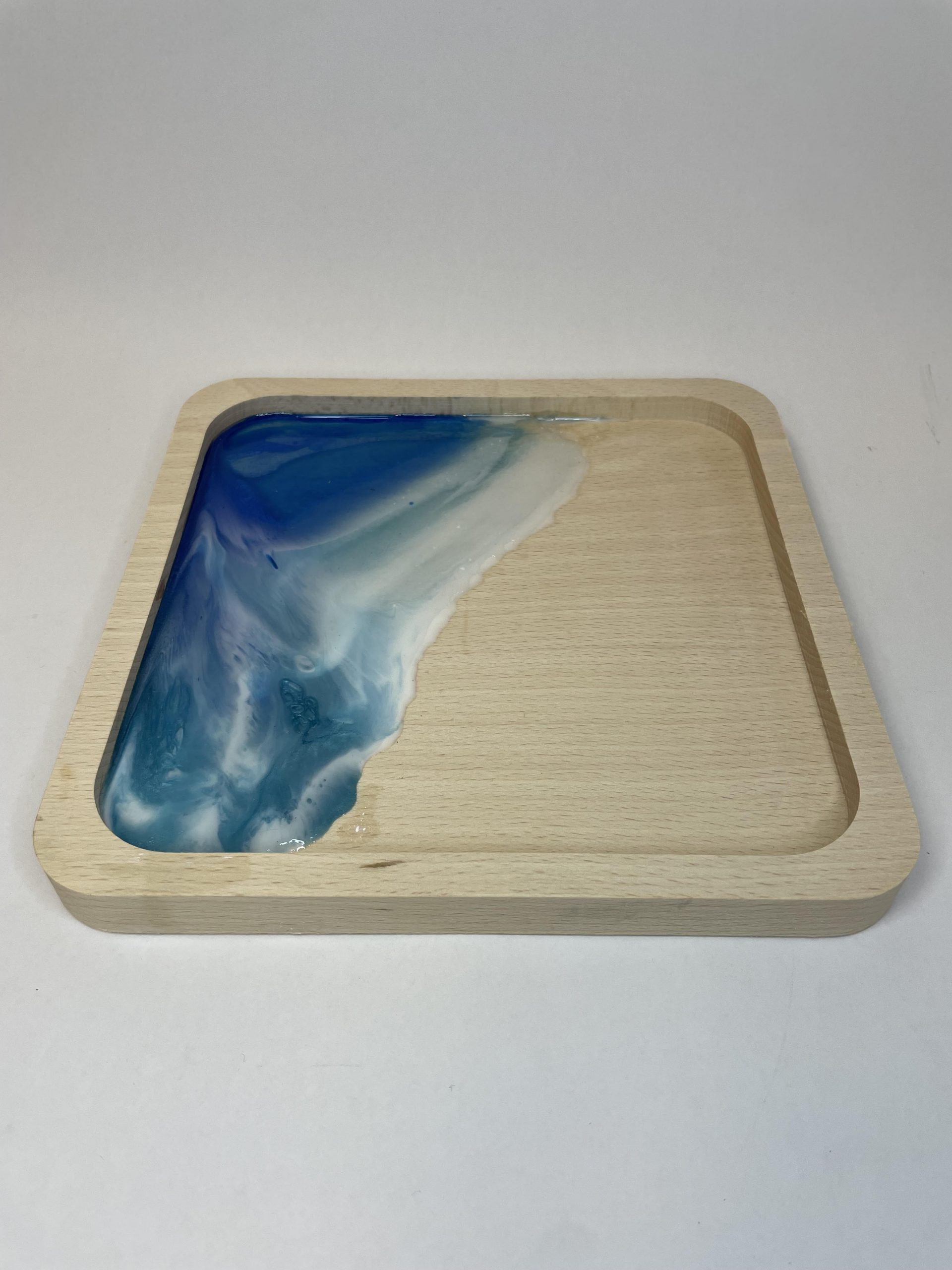 Originálny set drevenej tácky a podšálky s modrým epoxidom spája prírodné materiály s moderným dizajnom. Každý kus je ručne vyrobený, unikátny a plne praktický – poslúži ako štýlová dekorácia, podklad na servírovanie kávy, čaju či drobností a zároveň skvelý darček. Lesklý epoxid dodáva luxusný nádych, kombinácia s prírodným drevom pôsobí elegantne a harmonicky. Tácka s podšálkou je perfektným doplnkom do kuchyne, kancelárie alebo ako súčasť darčekového balenia.